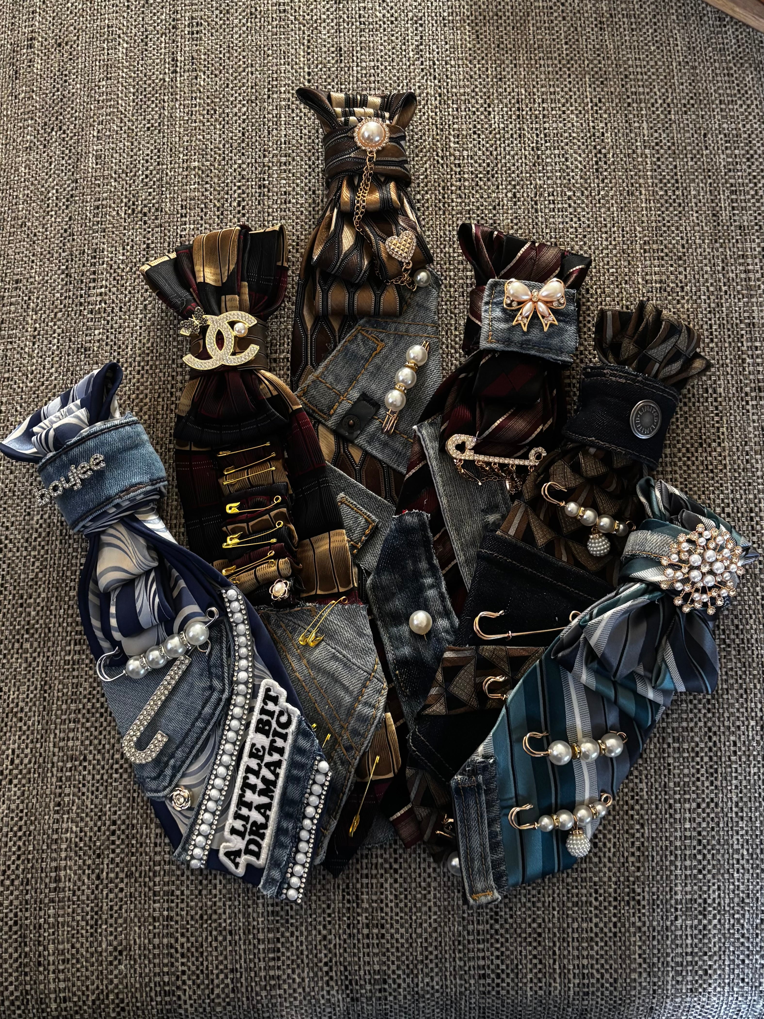 Our ties are designed for women who aren't afraid to stand out. Each piece blends bold style, denim details, and unique accents to create a look that feels confident, creative, and completely original.